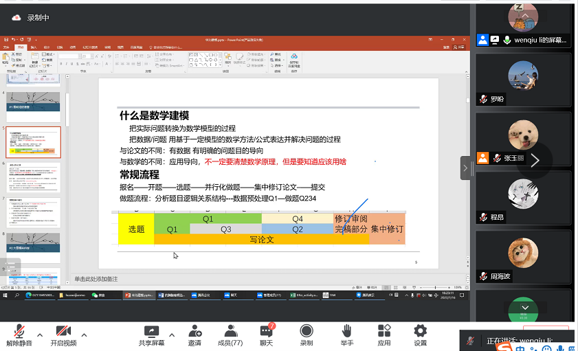7月16日下午,我院以线上形式举办了数学建模经验分享会,旨在使学生对数学建模竞赛建立更深刻的认识,鼓励广大学子积极参加数模竞赛,同时让同学们从获奖同学的参赛经验及心得体会中吸取经验,提升自我能力。本次活动邀请了在“华为杯”第十八届中国研究生数学建模竞赛中获奖的李问秋同学为大家分享经验。本次分享会由张玉丽担任主持人,yl9193永利部分教师及全体研究生积极参会。