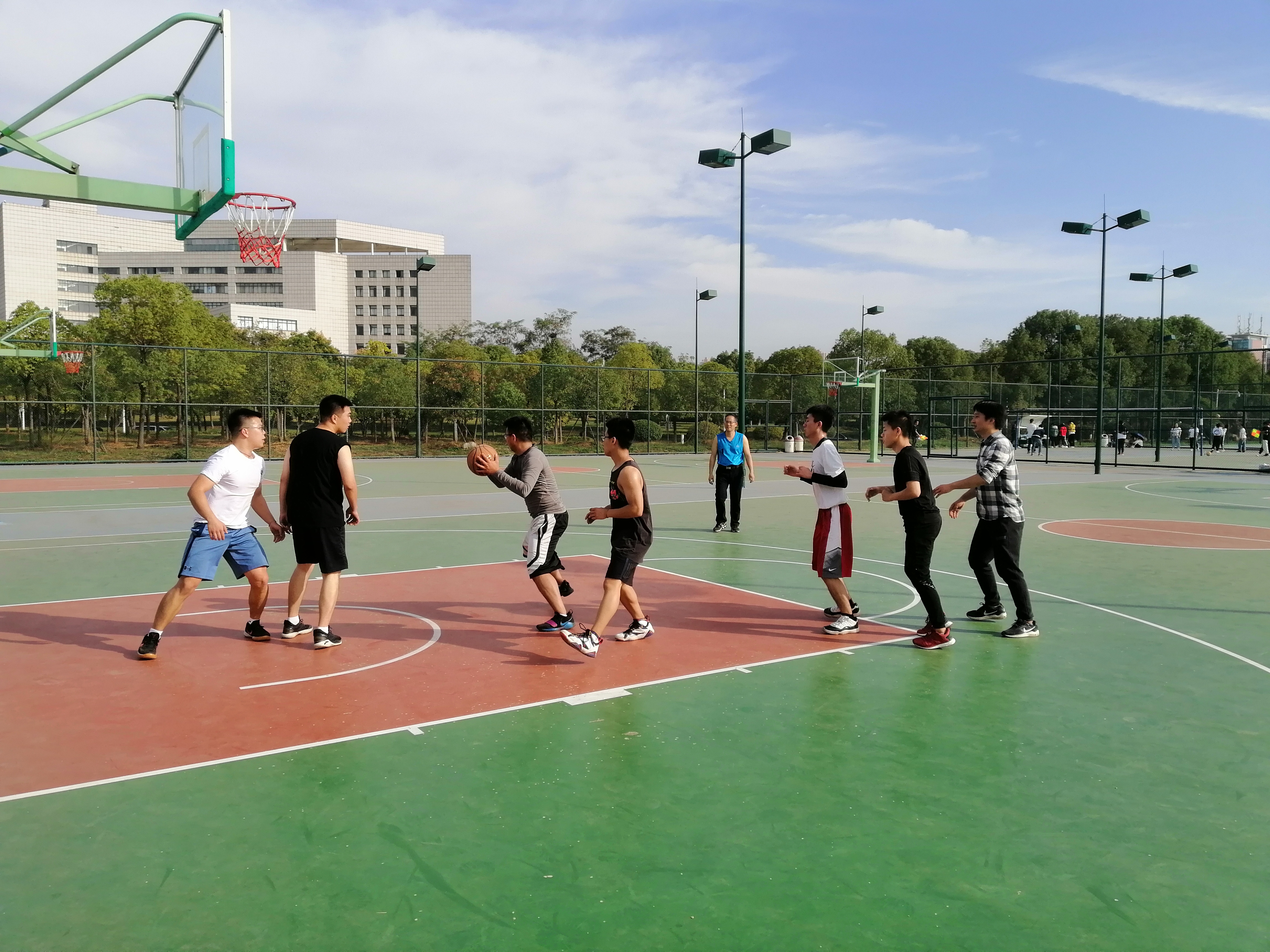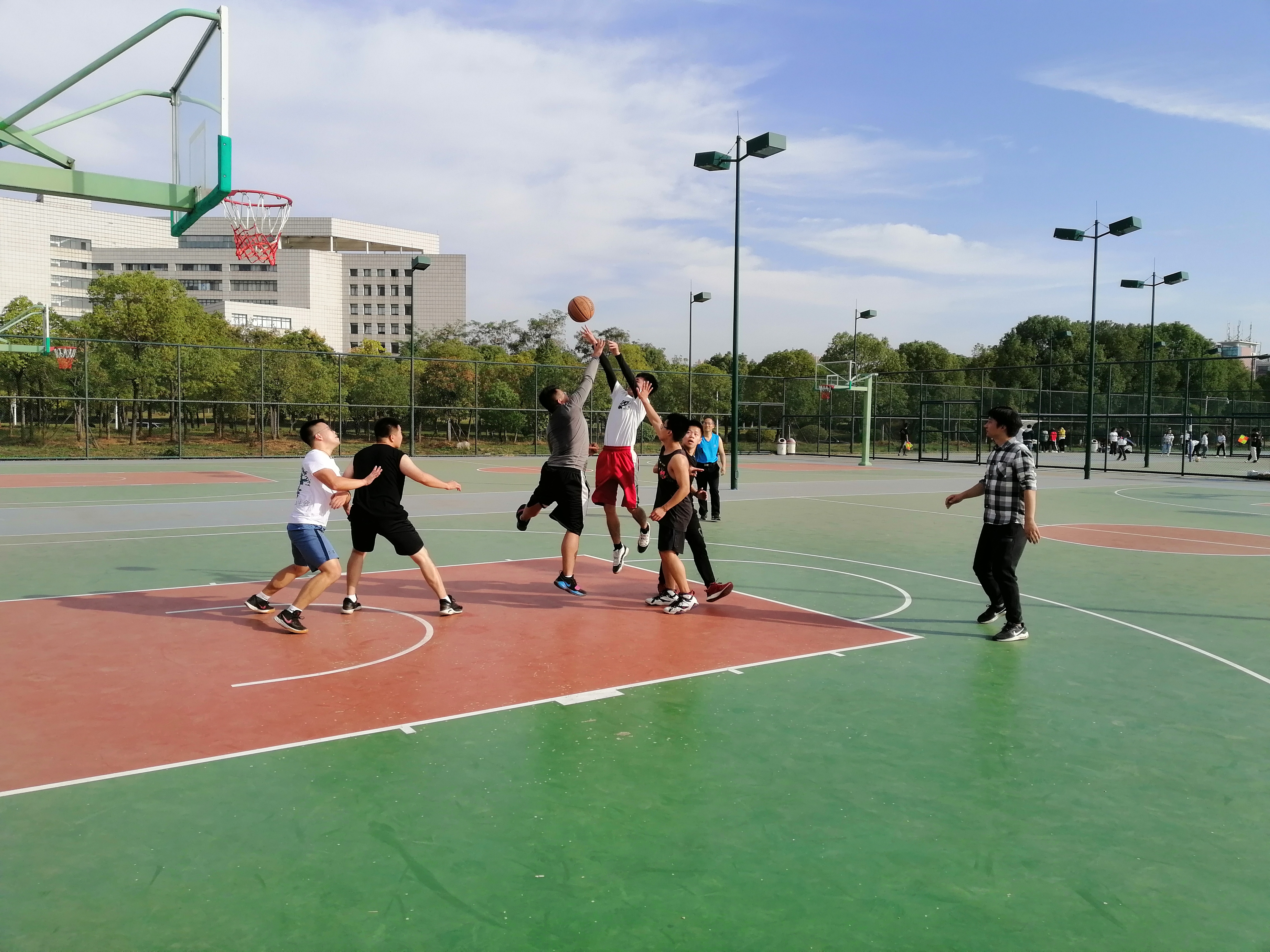 10月31日下午,学校第二十九届运动会期间,为给运动健儿加油助威,yl9193永利研究生与教师在阳光校区举行了一场精彩激烈的篮球热身赛。