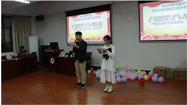 来自21级、22级、23级的各级学子陆续到场入座,晚六点茶会话准时开始,首先由主持人对到场观众表示欢迎,介绍本次茶话会节目安排,在场观众掀起阵阵掌声,无不期待着后续精彩纷呈的节目表演。
